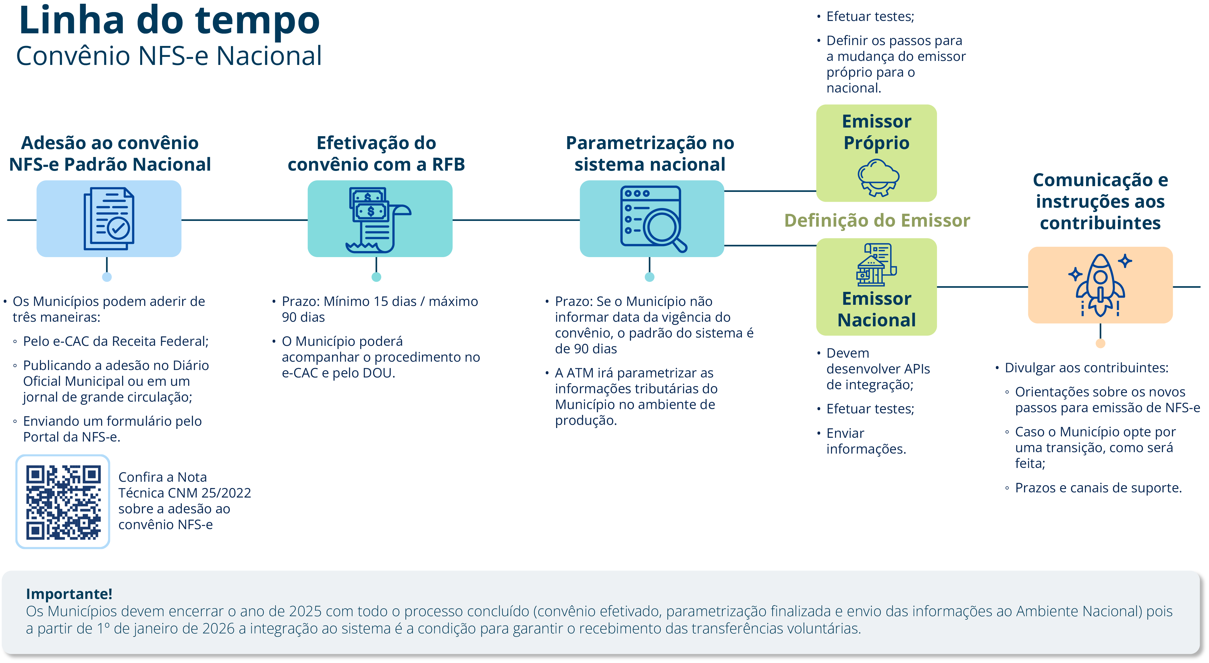 A CNM recomenda aos Municípios que ainda não aderiram ao convênio para que tenham atenção aos prazos e orienta pela Nota Técnica 25/2022 as formas para adesão.
